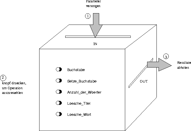 Es stellt einen Unterprogramm-Body dar, der die sichtbaren Teile eines Paketes und zwei generische Pakete benutzt. In diesem Fall haben die Pfeile also die Bedeutung von ,,Verwendung``, wobei man darunter sowohl den Zugriff auf Typen oder Variablen, die in Paketen deklariert sind, versteht als auch den Aufruf von Unterprogrammen, die entweder für sich stehen oder als Operationen in Paketen definiert sein können.